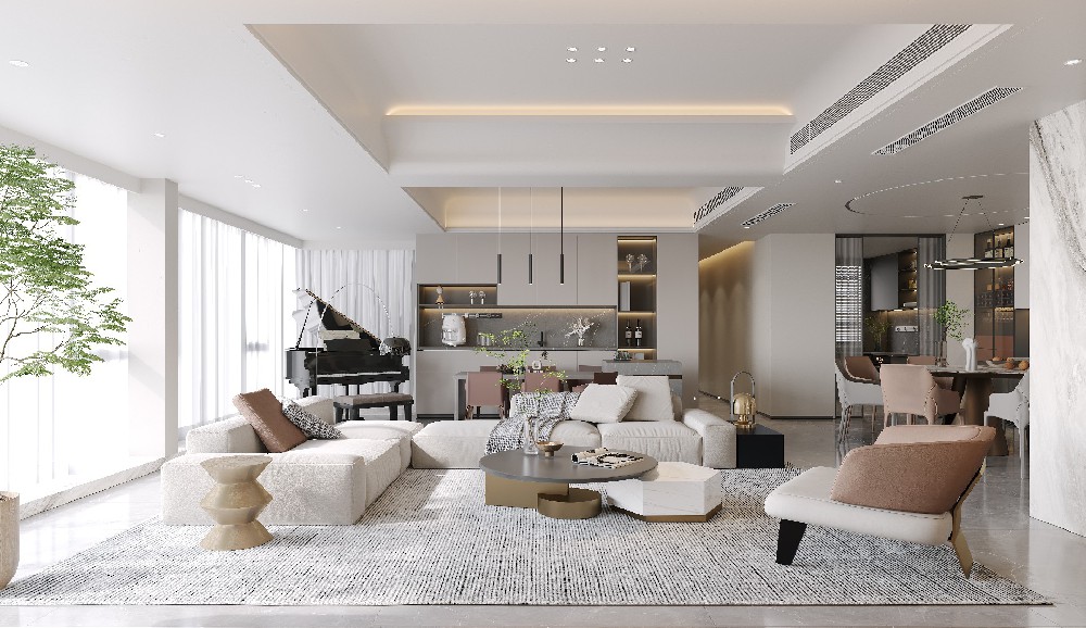 • 【裝修頭條】貴陽大平層裝修完工案例,未來方舟G6組團288平米意式極簡風格設計!